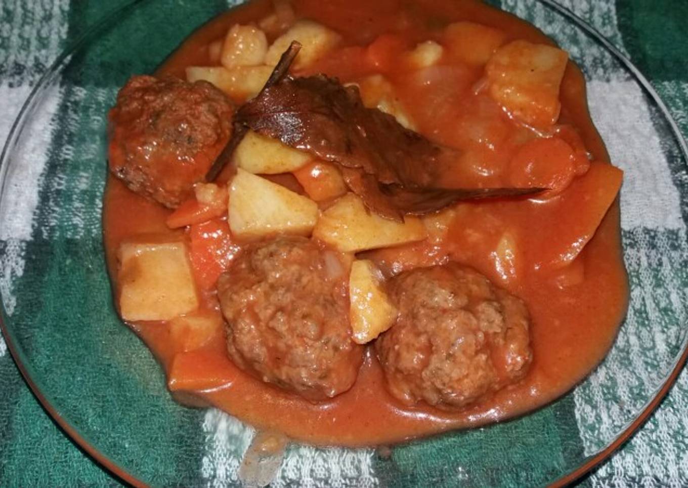 - Cuando vemos que las albóndigas están casi listas, agregamos las papas cortadas en cubitos o rodajas al medio