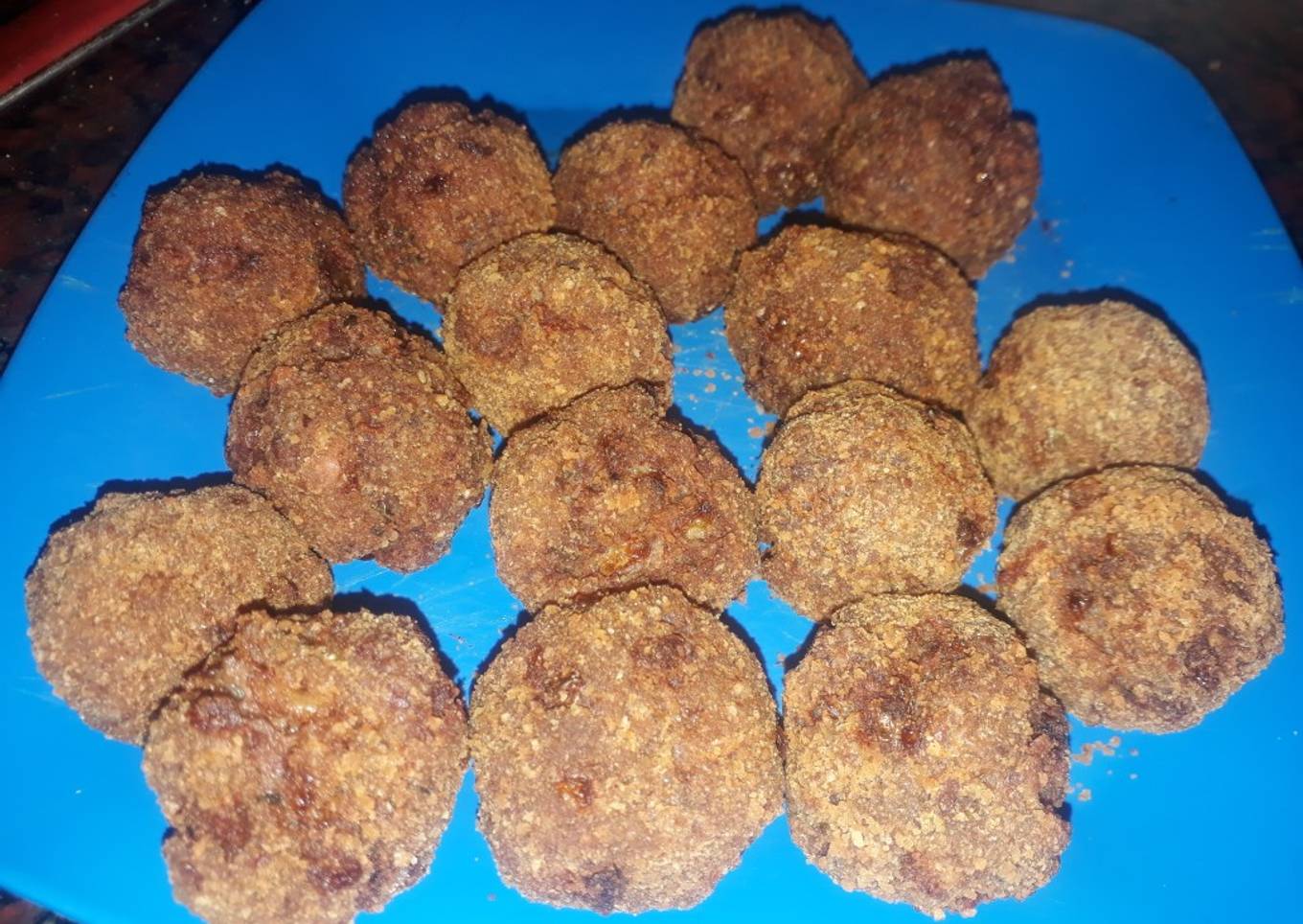 - Pasar las albóndigas por huevo y pan rallado.