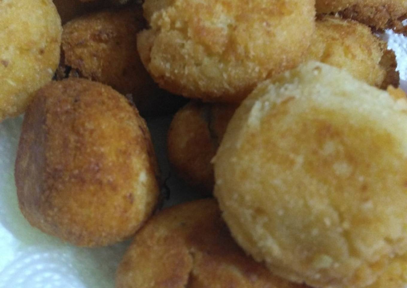 - Formar albóndigas con el pan rallado y poner un pedacito de queso fresco adentro
