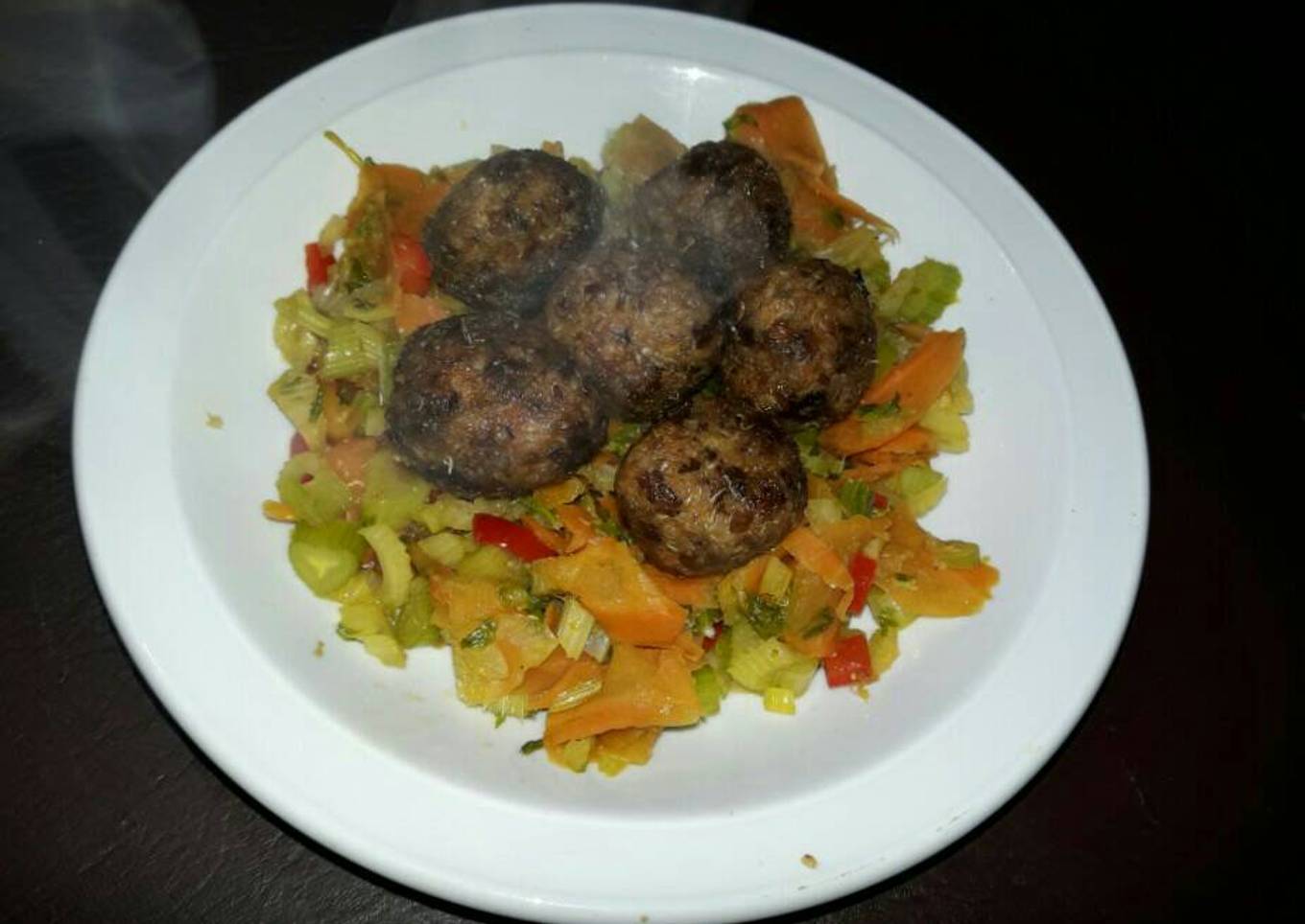 Albóndigas de quinoa sobre panaché de verduras