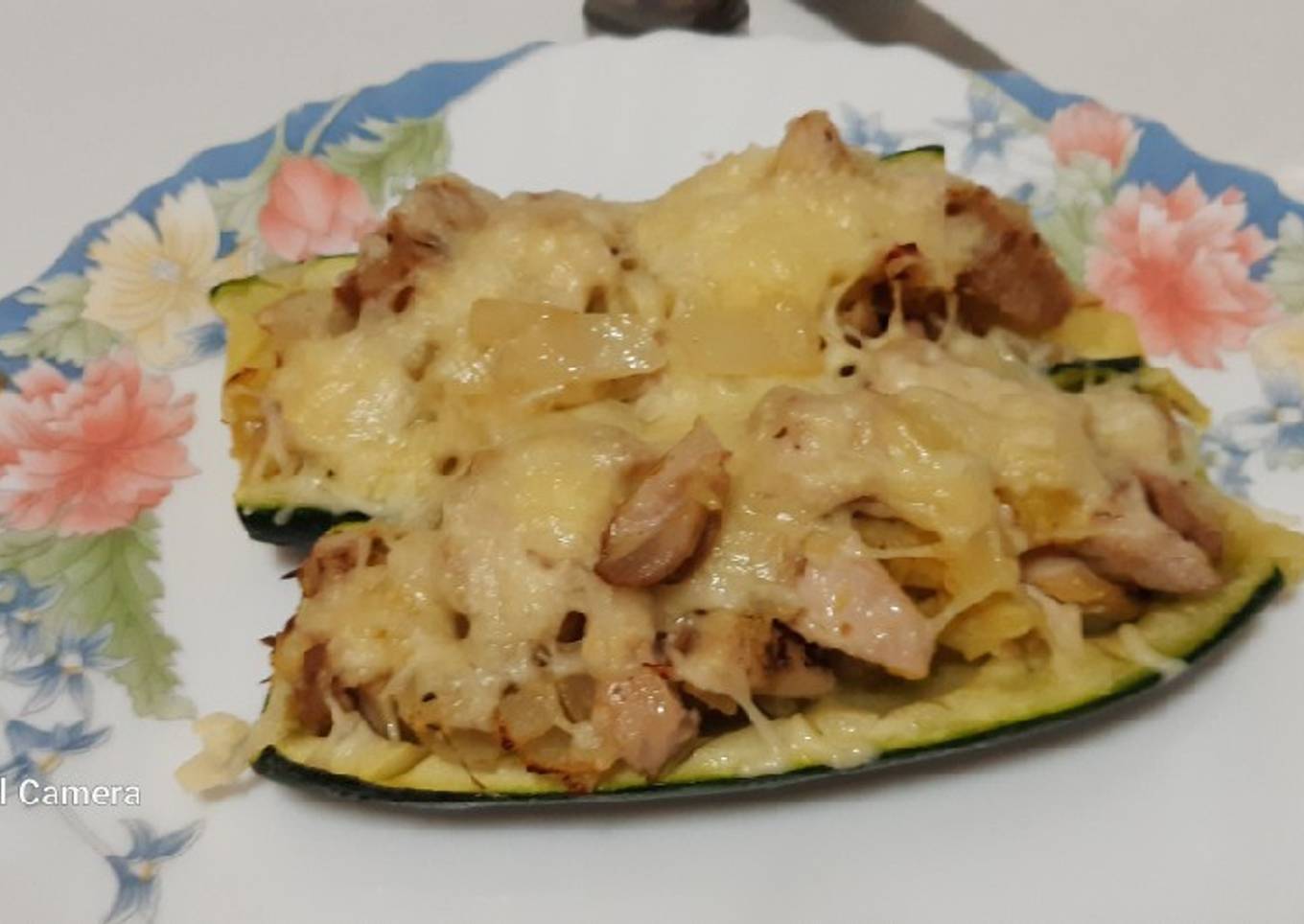 Calabacín relleno de pollo en airfryer, microondas y sartén