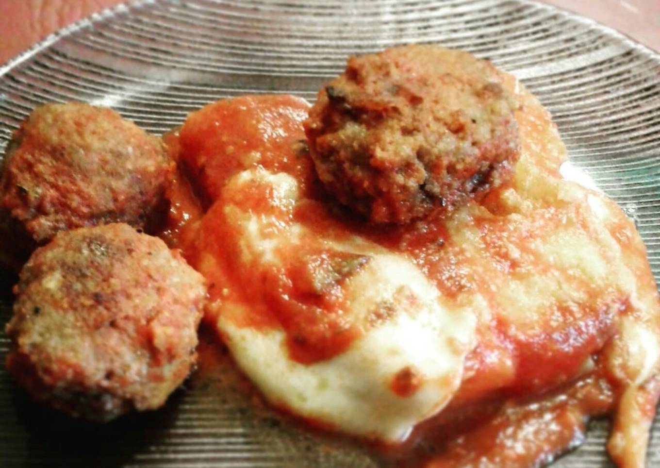 Polenta con queso salsa y albóndigas